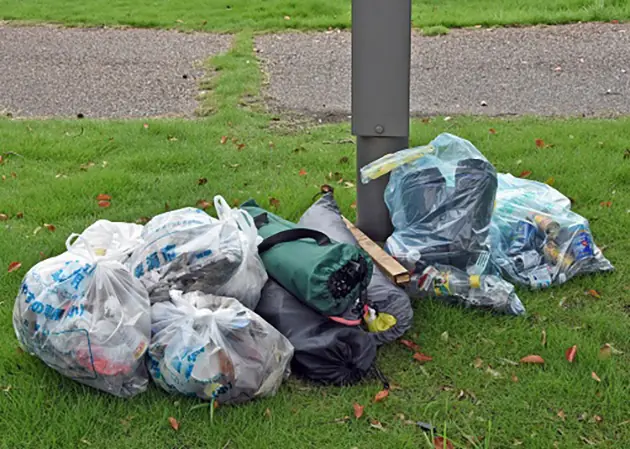 - 歩道や路肩、植え込み、草むらには、捨てられた吸殻や空き缶、ペットボトルに加えてテントや椅子などのアウトドアグッズも捨てられており、可燃物と不燃物に分けて回収しました。