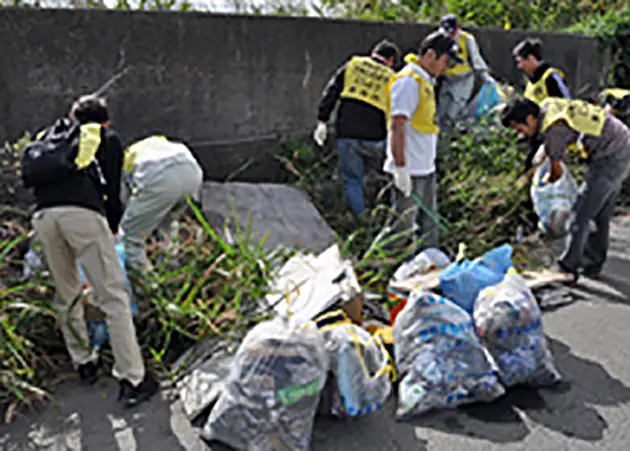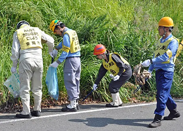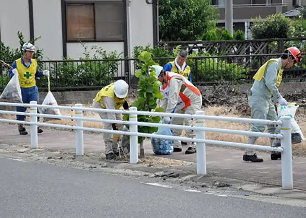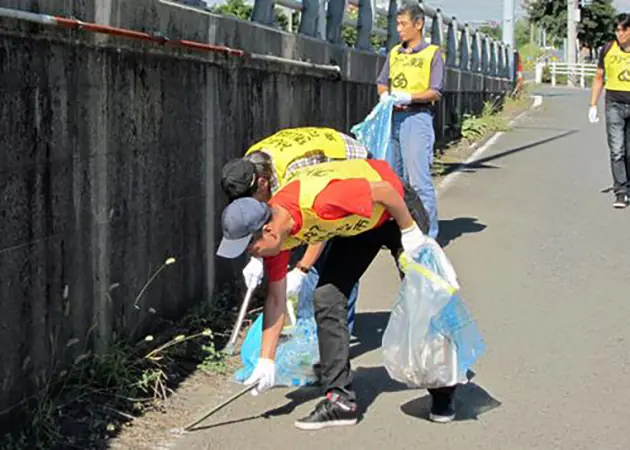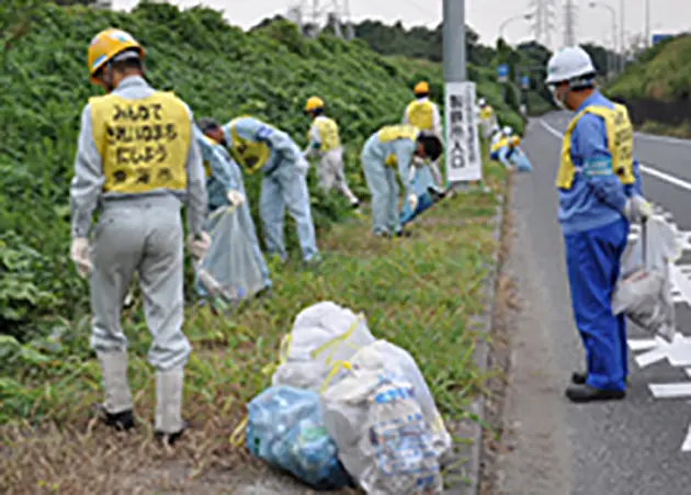 - 5日には名古屋製鉄所協力会(名協会)の有志60人が、荒尾インターチチェンジ周辺を清掃しました。