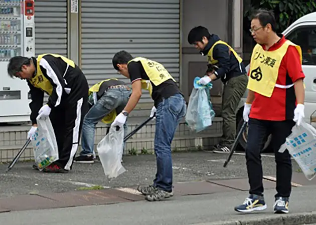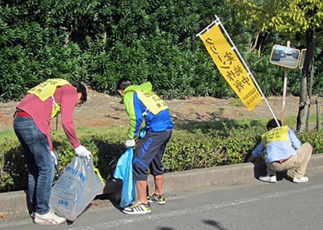 - この活動は、2003年から行われており、当初は西知多産業道路のインターチェンジの路肩の清掃を行っていましたが、同エリアが立ち入り禁止となったため、市内の歩道へ変更されました。歩道や路肩、木の植え込みに捨てられた吸殻や空き缶、ペットボトル等は、可燃物と不燃 物に分けて回収し、「ごみの捨てにくい環境づくり」の一翼を担いました。