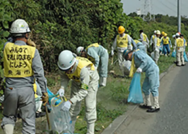 - 9月30日には、名古屋製鉄所協力会(名協会)の有志21人が東海町3丁目を、また10月3日には、当所 の係長連合会、東海市役所職員、愛知県知多建設事務所職員の有志44人が東海町1、7丁目を清掃しました。