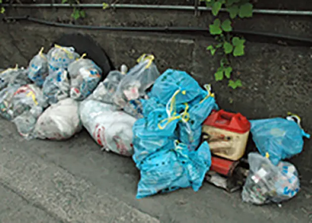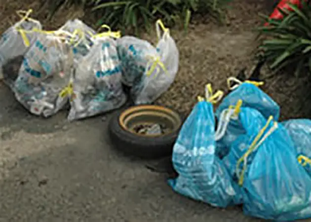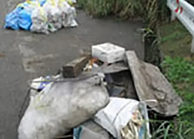 - 歩道や路肩、木の植え込み、草むらには、捨てられた吸殻や空き缶、ペットボトルに加えてビデオデッキやバッテリー等も捨てられており、可燃物と不燃物に分けて回収しました。
