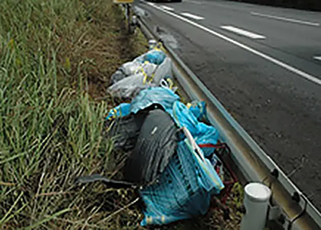 - 当所は地域活動の一環として従来から毎年実施しているもので、今年は空き缶や弁当の空箱、ホース、自動車のバンパーなど1時間余で集めたゴミは、昨年とほぼ同量の燃えるゴミが45袋、燃えないゴミが25袋になった。特にゴミが多かった場所は、下り線常滑方面への降り口で燃えるゴミが18袋、燃えないゴミが7袋にもなりました。