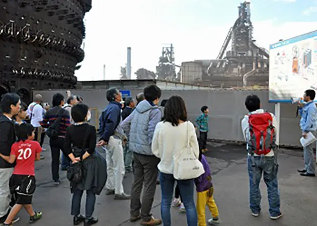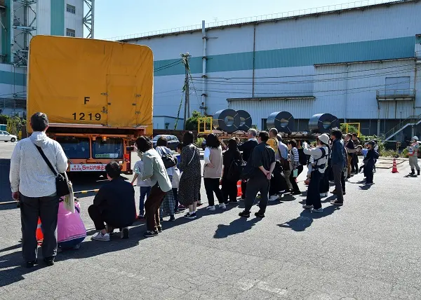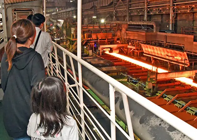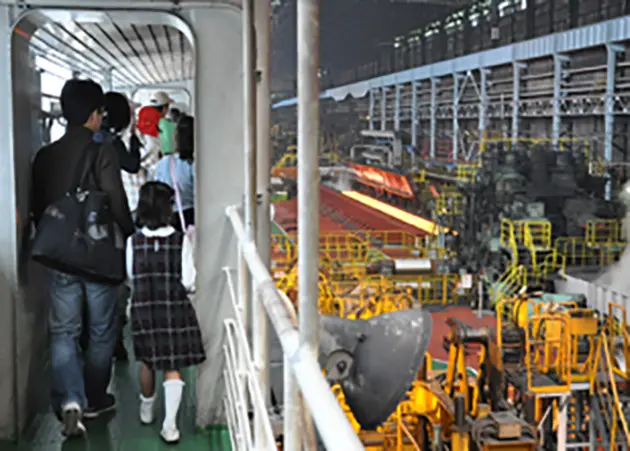 二日間にわたり行われた工場見学は大盛況で、今年新たに加わった高炉マンテルでは、目の前で見る高炉の迫力とマンテルの大きさに見学者から感嘆の声が上がっていました。また、熱延工場では真っ赤なスラブが発する熱とそれが薄く延ばされる様子に興味深く見入っていました。