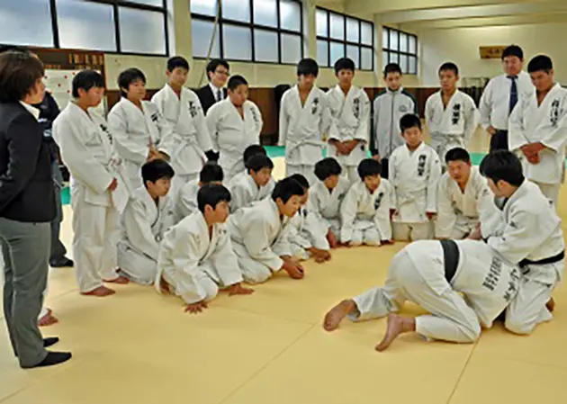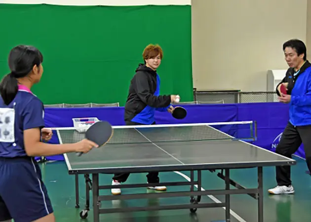 新日鐵住金杯中学生スポーツ交流会では、日本福祉大学女子ソフトボール部員によるソフトボール講習会や当所文体部員による卓球講習会、剣道合同練習・居合の実演等、熱心な指導等が行われました。