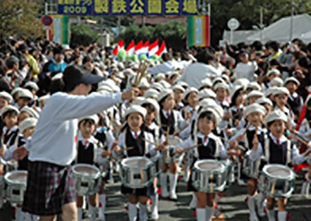 1日目の製鉄公園会場は、東海市消防音楽隊、近隣の幼稚園児や地元の加家町内会など1400余人が行進するオープニングジャンボパレードに続き、勝山名古屋製鉄所長や鈴木東海市長はじめ関係者によるくす玉割りで開幕。ドリルジャンボリーでは幼稚園児による可愛らしい演技を一目見ようと父兄・祖父母らの人垣であふれかえりました。また、ちびっこ剣士による剣道大会も行われ、熱戦が繰り広げられました。