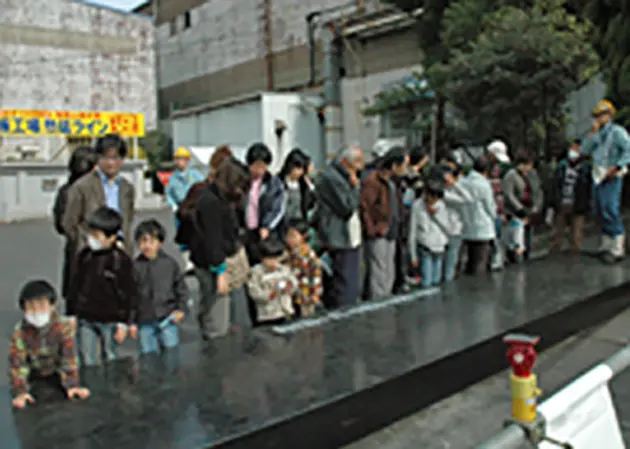 翌6日は、キャラクターショーやクイズ・ゲーム大会に加え、今年新たに企画した当所協力会(名協会)の餅投げ・菓子まき、ミニSL「弁慶号」にも大勢の家族連れが詰めかけ、秋の休日を楽しんでいました。2日間行われた新鮮野菜・果物大安売り市は、市場価格より安い販売価格とあって完売し、製鉄所工場見学も昼前後には整理券がなくなる人気ぶりとなりました。