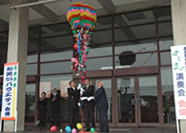 製鉄公園会場では、1,000余人によるオープニングジャンボパレード、セレモニーで開幕。続いてドリルジャンボリーでは地元の幼稚園児らによる可愛いらしい演技や愛知産業大学工業高校マーチングバンドの躍動感ある演技が会場を沸かせました。体育館ロビーでは当所茶道部が竹や椿で飾った茶室を設け、呈茶コーナーを開催しました。