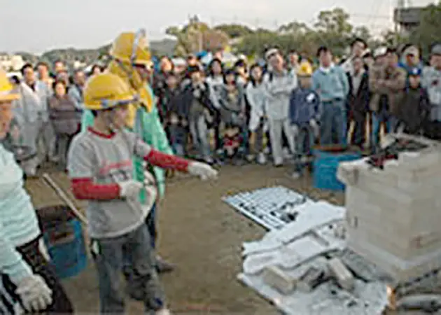 翌15日は天候も回復し、日本古来の製鉄技術を実演する“たたら製鉄”、お楽しみゲーム大会、キャラクターショー、防災コーナー(煙体感、消火器放射体験)などに加え、二日間行われたスチール缶の貯金箱&リサイクル、スラグ&リサイクル、新鮮野菜・果物大安売りは、多くの所員が協力するとともに、家族連れが多数つめかけ、秋の休日を楽しみました。