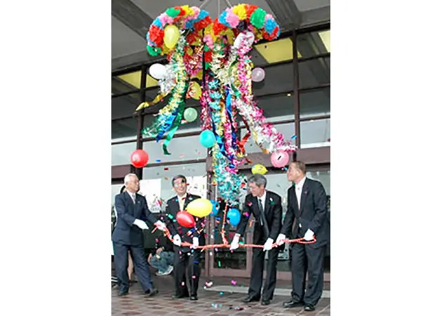 製鉄公園会場は恒例のジャンボパレードで幕を開けました。快晴の中、愛らしい姿をカメラに納める親達など多くの人たちが見守る中を華やかに行進。引き続き、まつり広場で鈴木東海市長、二村名古屋製鉄所所長、子供達によってクス球が割られオープンしました。