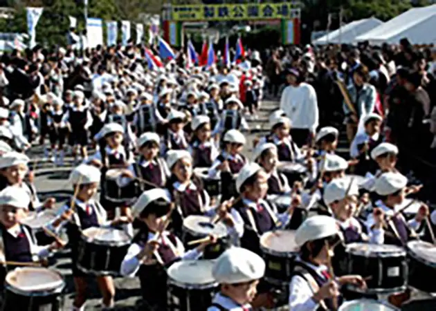 初日の幼稚園児によるマーチングドリルでは、かわいらしい園児が懸命に演技する姿を多くの父兄や祖父母らが見守るとともに、写真や映像に納める姿が多く見受けられました。好評の愛産大工業高校マーチングバンドは、バスターミナルからセントラルパークまで行進し、同パーク内でダイナミックな演技と迫力ある演奏を披露しました。
