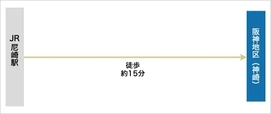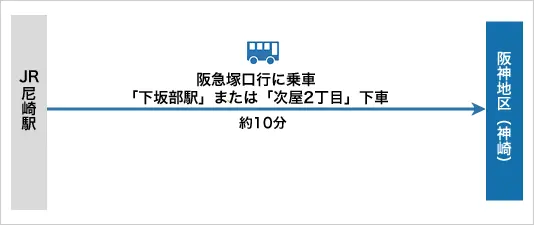 JR「尼崎駅」から(阪急塚口行)に乗車し、「下坂部駅」または「次屋2丁目」下車。
