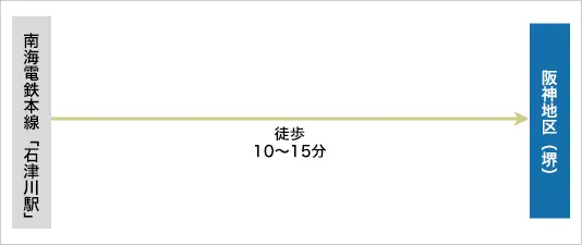 南海電鉄本線「石津川駅」から徒歩10~15分。
