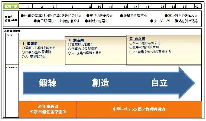 鉄づくりの匠へと成長してもらうべく、充実した教育・研修体系が構築されています。
