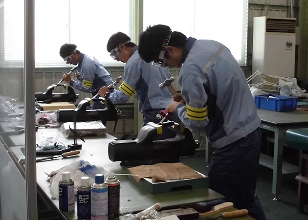 当社はものづくりは人づくりからと考え、マンツーマンでの技能伝承はもとより、モラルも含めた人間的成長を目標としています。